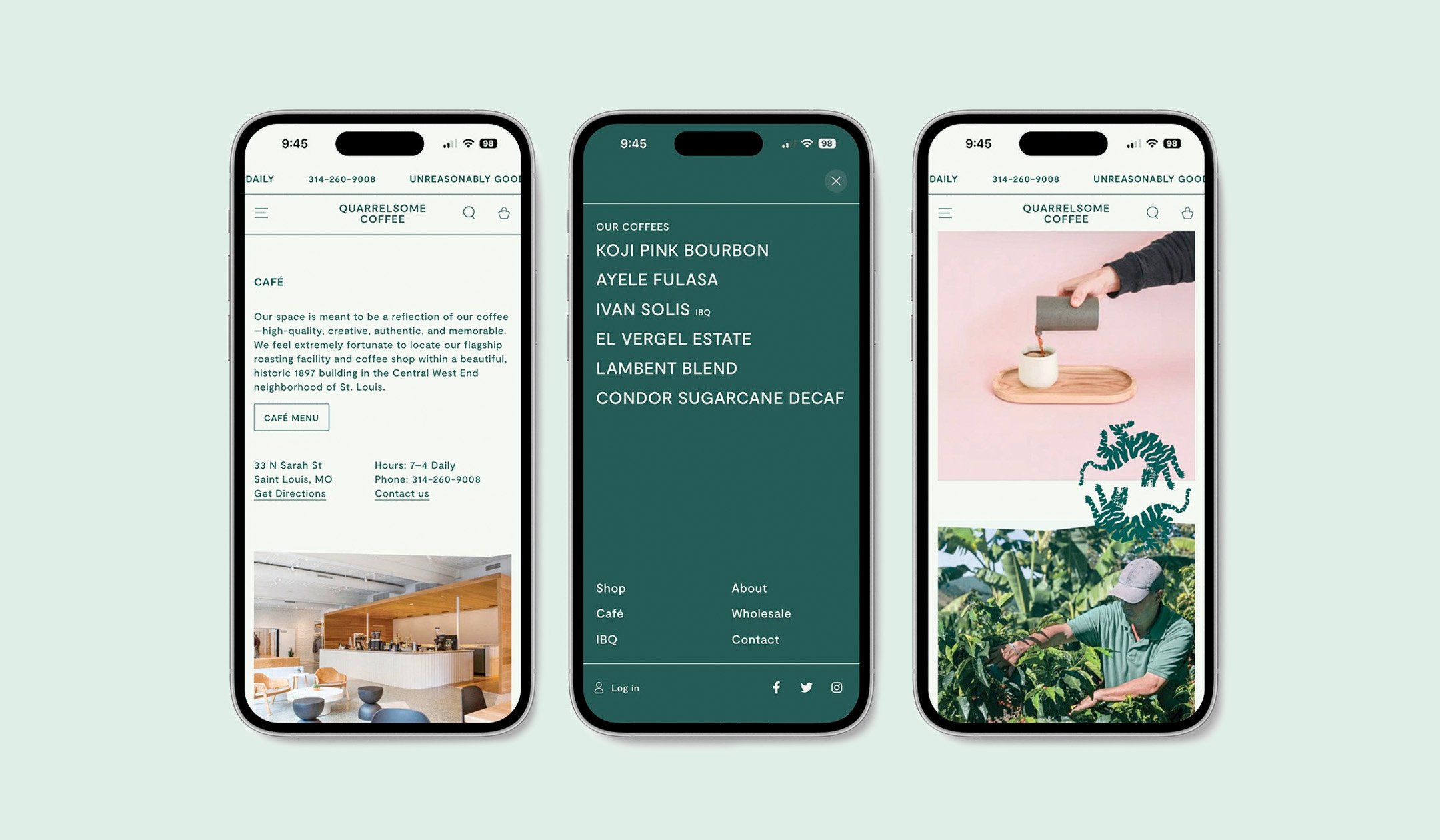 Be unreasonable. When you do something unexpected, when you do something that makes others question your sanity, that’s when you could be onto something exciting. That was the premise behind the brand design direction for Quarrelsome Coffee. We had our work cut out for us with a name as controversial as "Quarrelsome," so we counter-balanced those emotions with brighter colors and playful illustrations to signal that it wasn't to be taken seriously. The responsive website was built on Shopify.